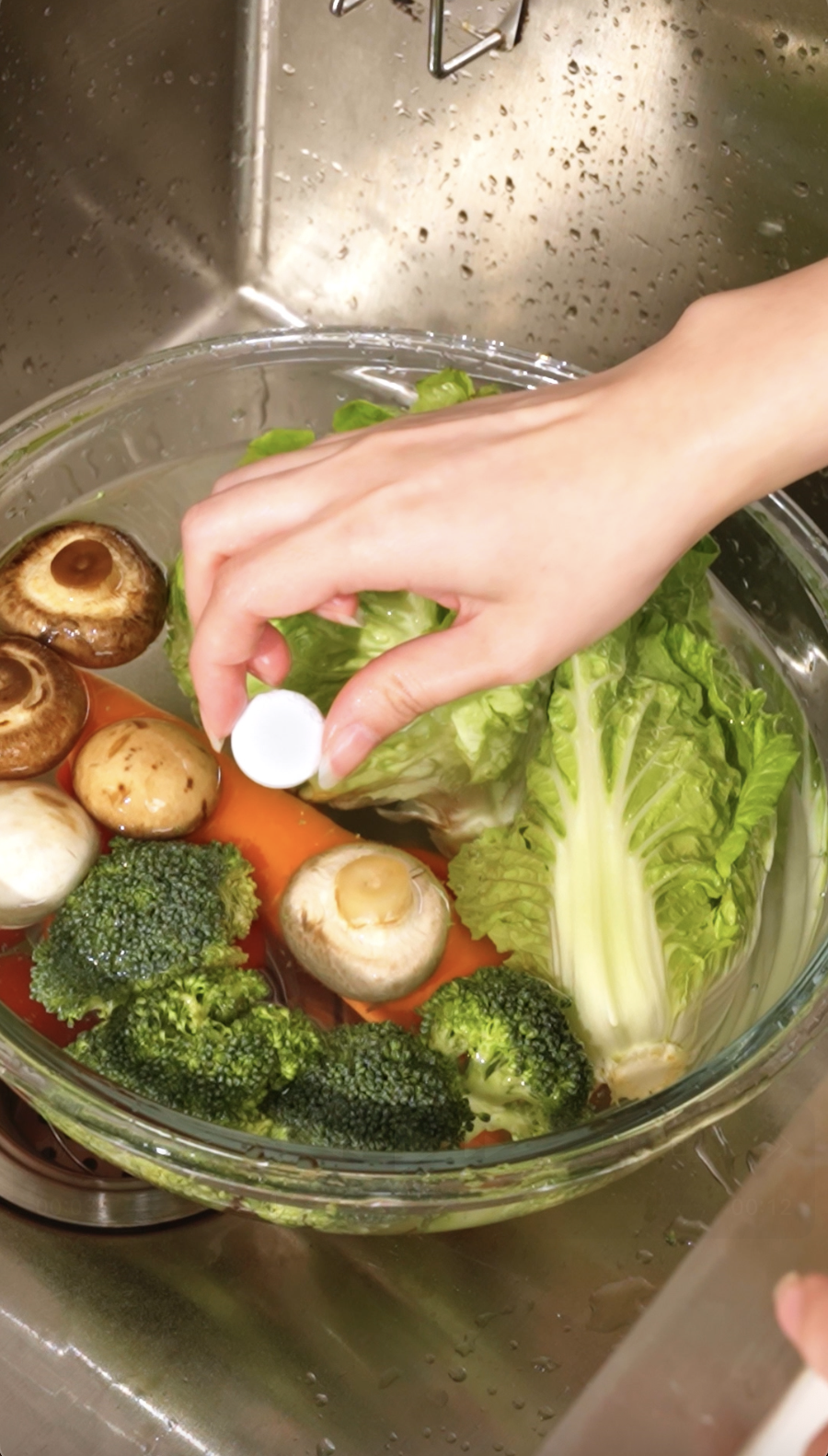 You may notice light particles in the water after soaking — this is normal part of the cleaning process.